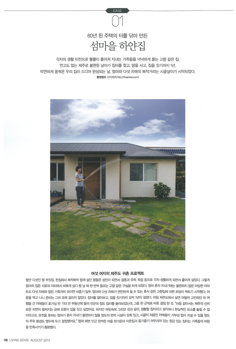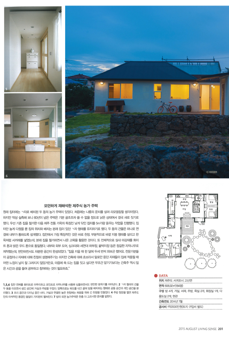 고산리 주택이 리빙센스 2015.8월호에 실렸습니다.