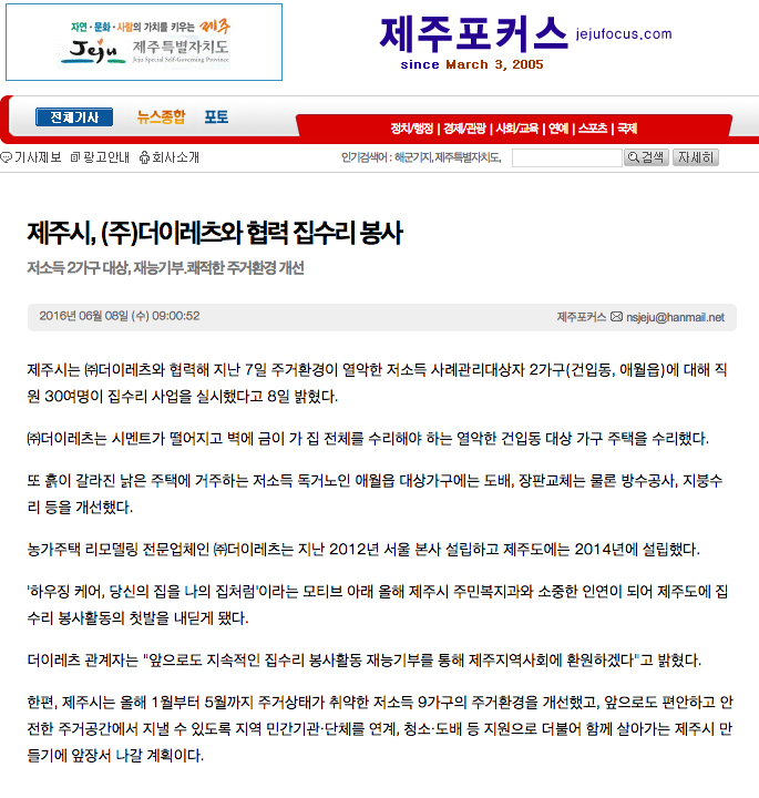 제주포커스에 실린 <하우징케어 - 이웃돌아보기> 사업